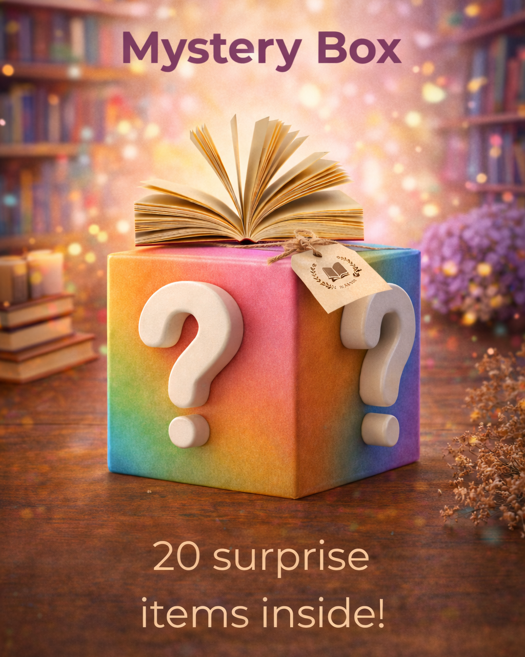 Each Mystery Box is packed with 20 random bookish treasures, carefully chosen to spark joy and cozy reading vibes. 💫 Every box is unique — you’ll never know exactly what you’ll get, but that’s the fun of it! Items are selected from our signature color themes: Green, Blue, Pink, and Yellow 🌿💙🌸💛 — making each bundle a one-of-a-kind treat for readers who love surprises.